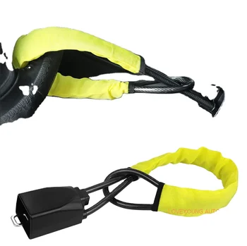 Black and Yellow Stripes Car Seatbelt Steering Wheel Lock with 3 Keys Anti Theft